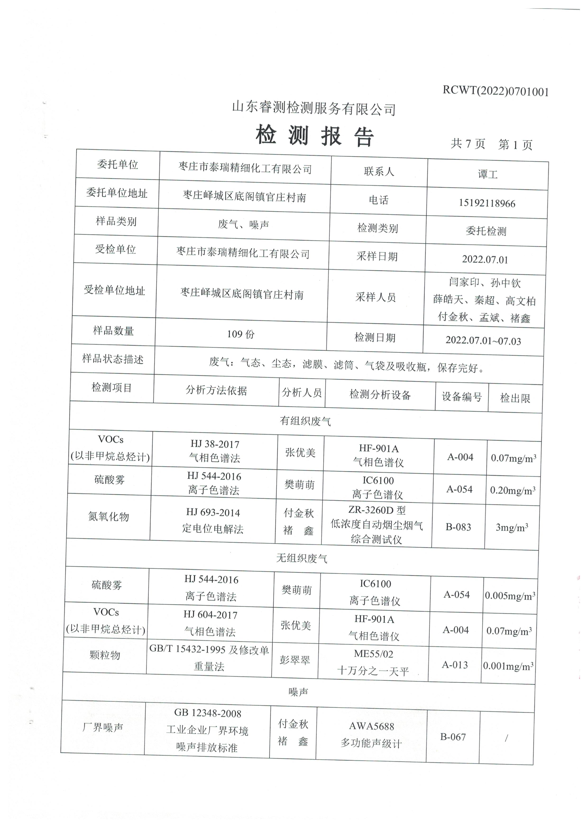 2022年6月份環(huán)境檢測(cè)報(bào)告