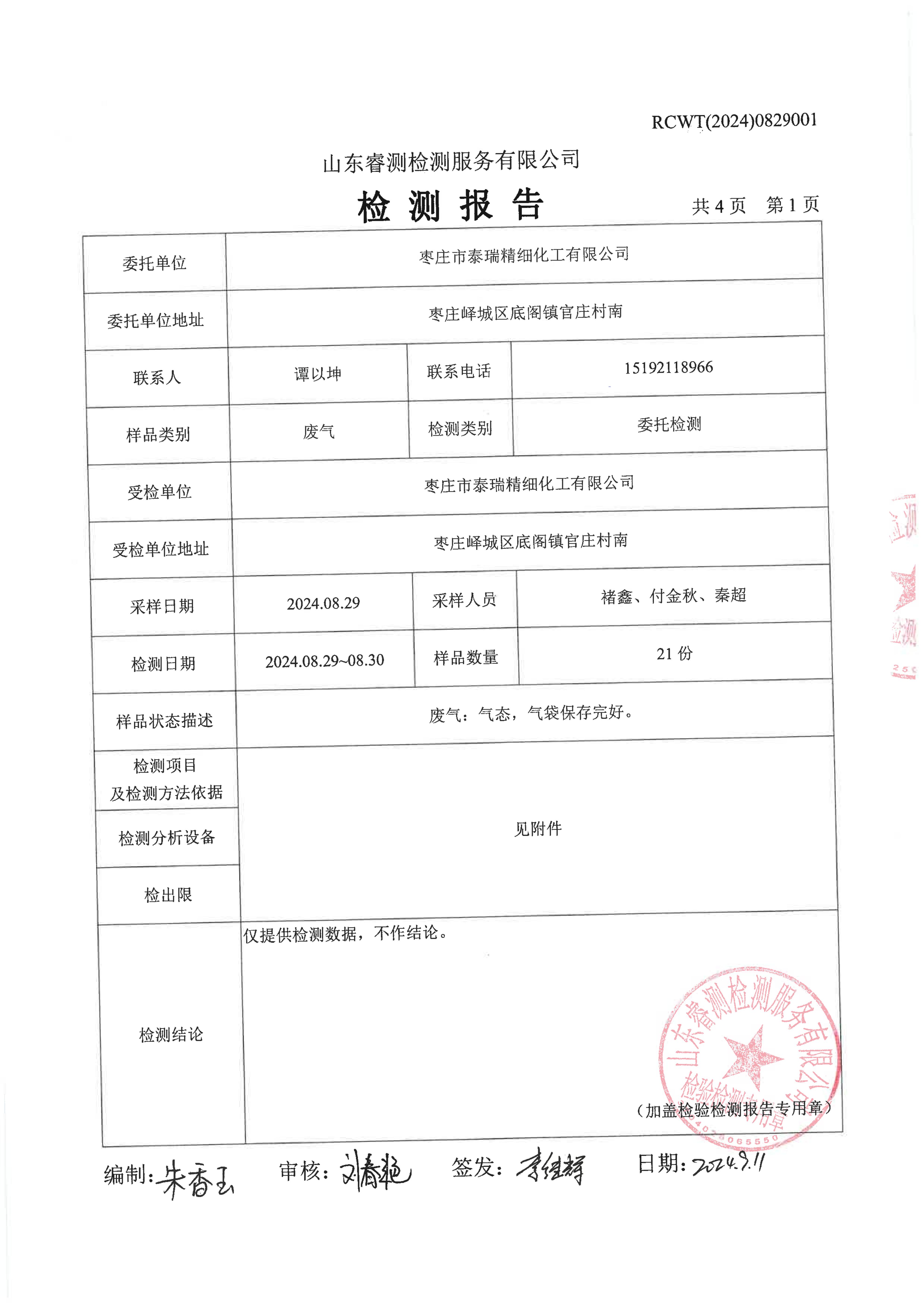 2024年8月廢氣檢測(cè)報(bào)告