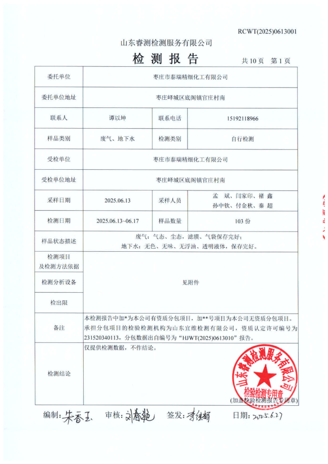 2025年6月廢氣、地下水檢測(cè)報(bào)告